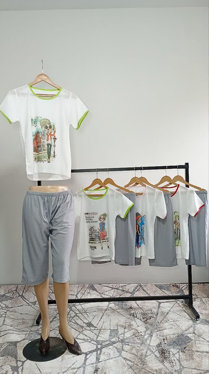 ست تیشرت و شلوارک کرپ سوزنی کد3001001