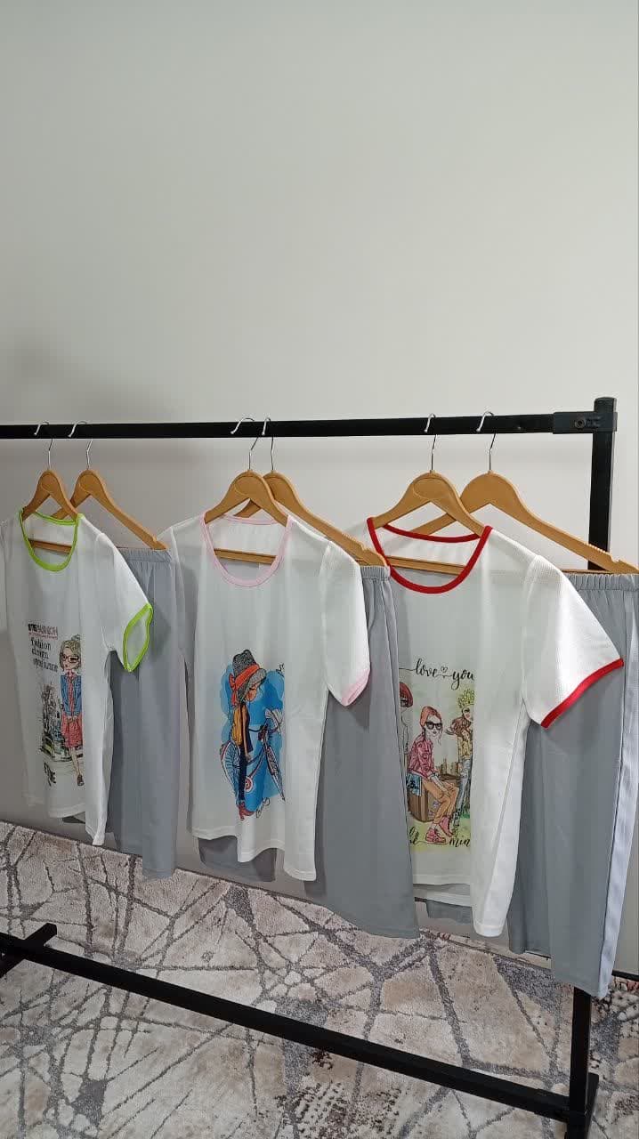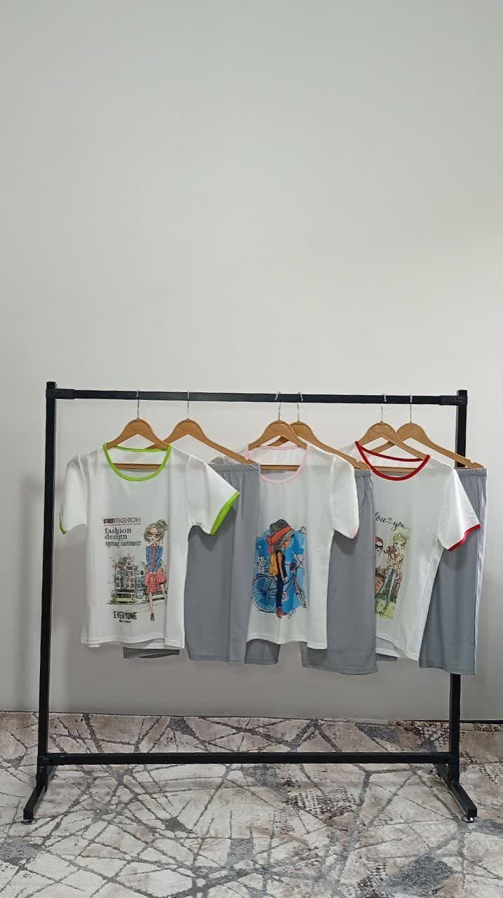ست تیشرت و شلوارک کرپ سوزنی کد3001001