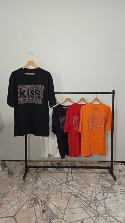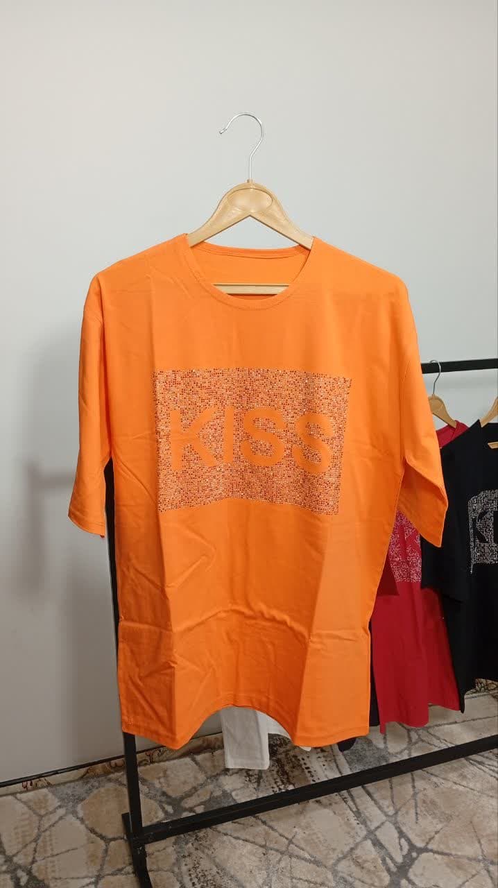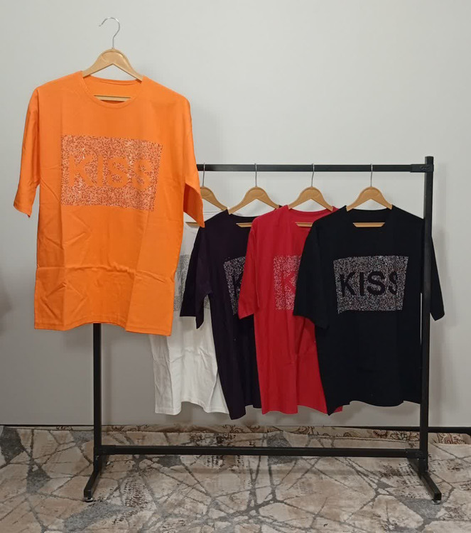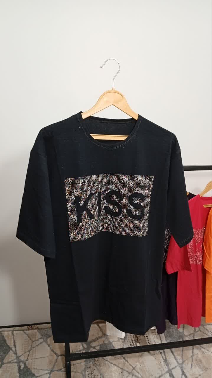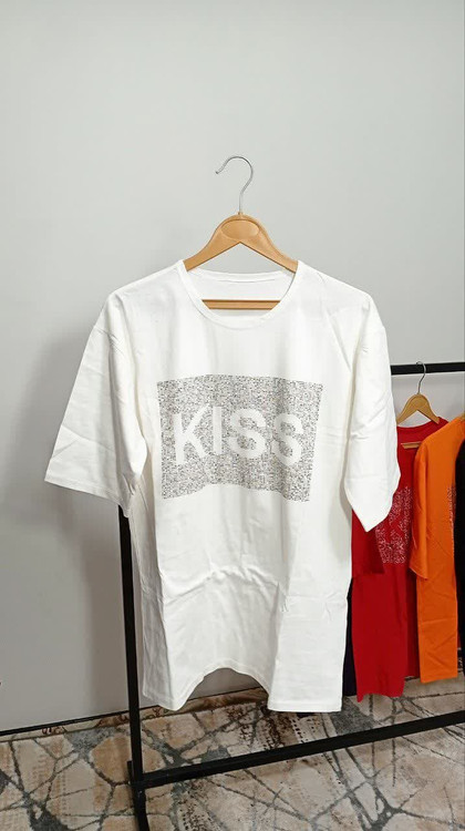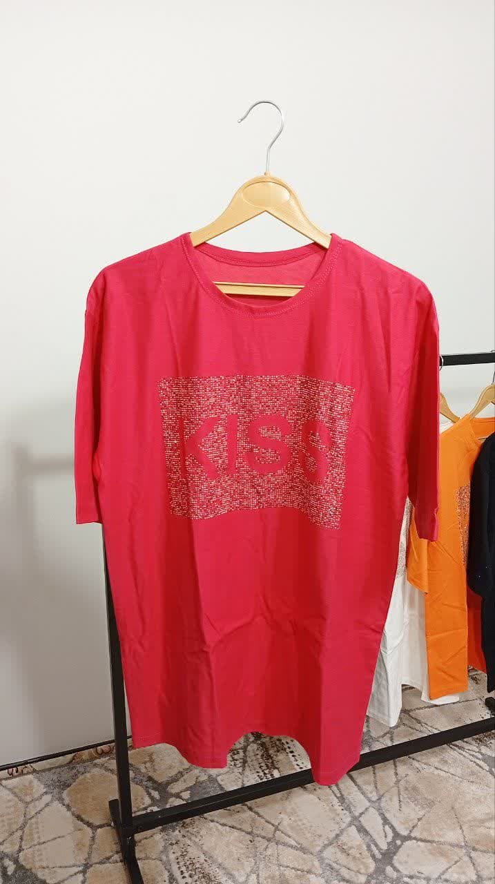 تیشرت لانگ چاپ نگین طرح kiss کد1001011