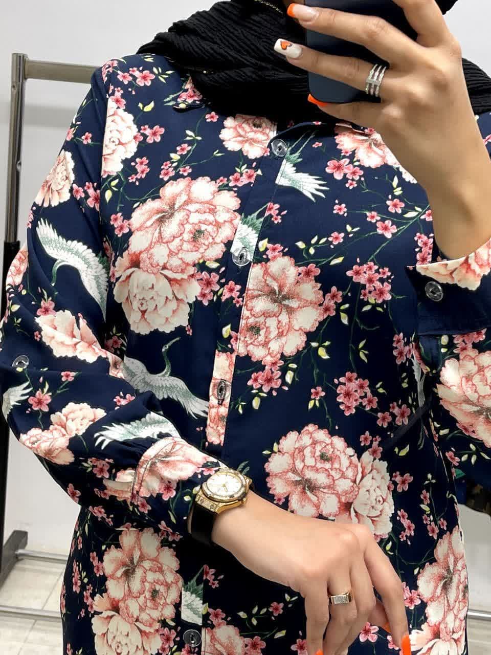شومیز دکمه دار کرپ طرح گلدار کد 5001010