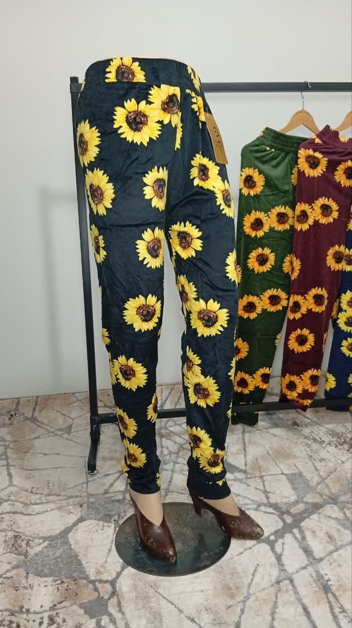 شلوار مخمل طرح گل آفتاب گردان کد2001000