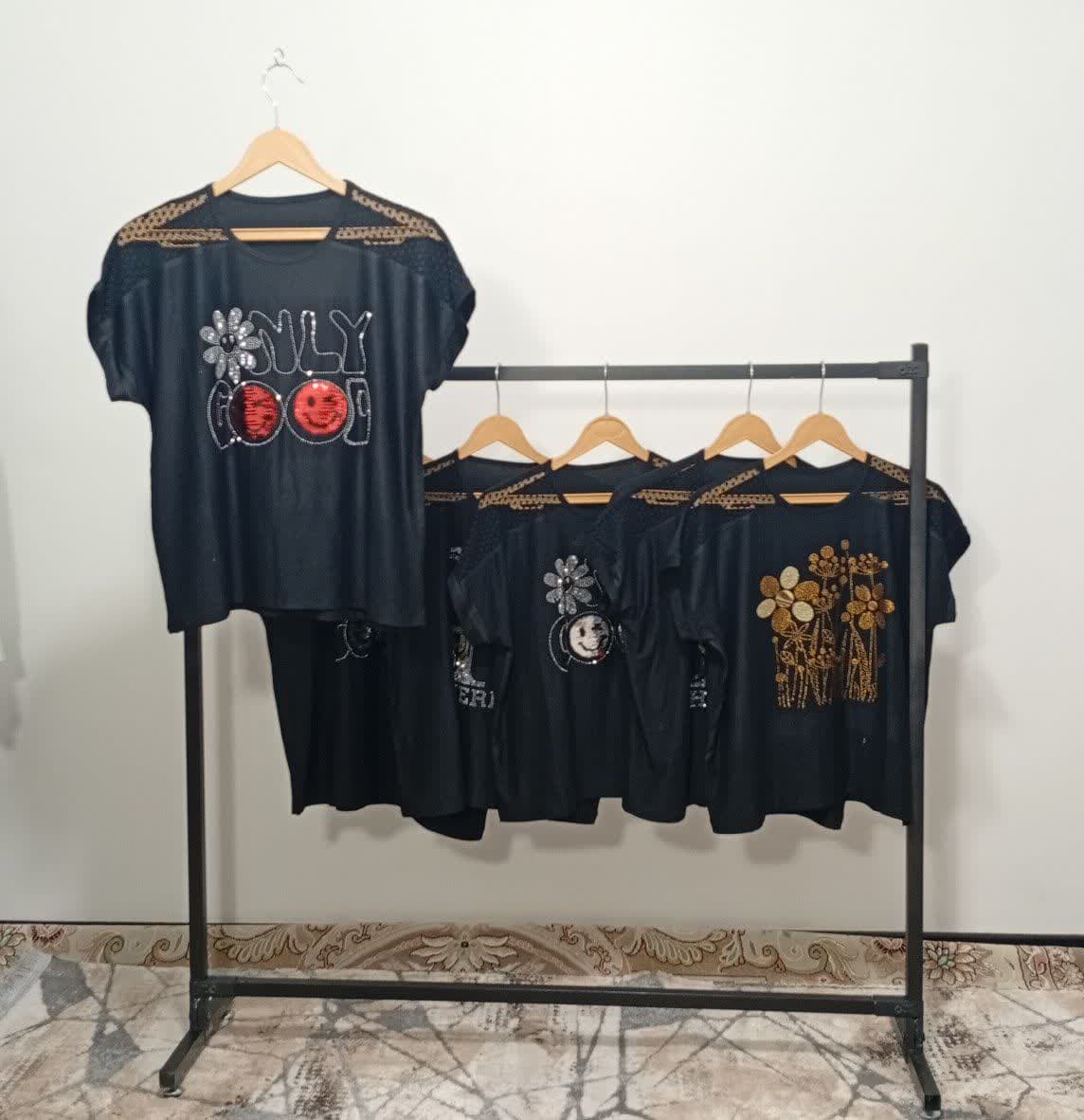 تیشرت آستین سرخود ویسکوز با طرح نگین کد 1001004